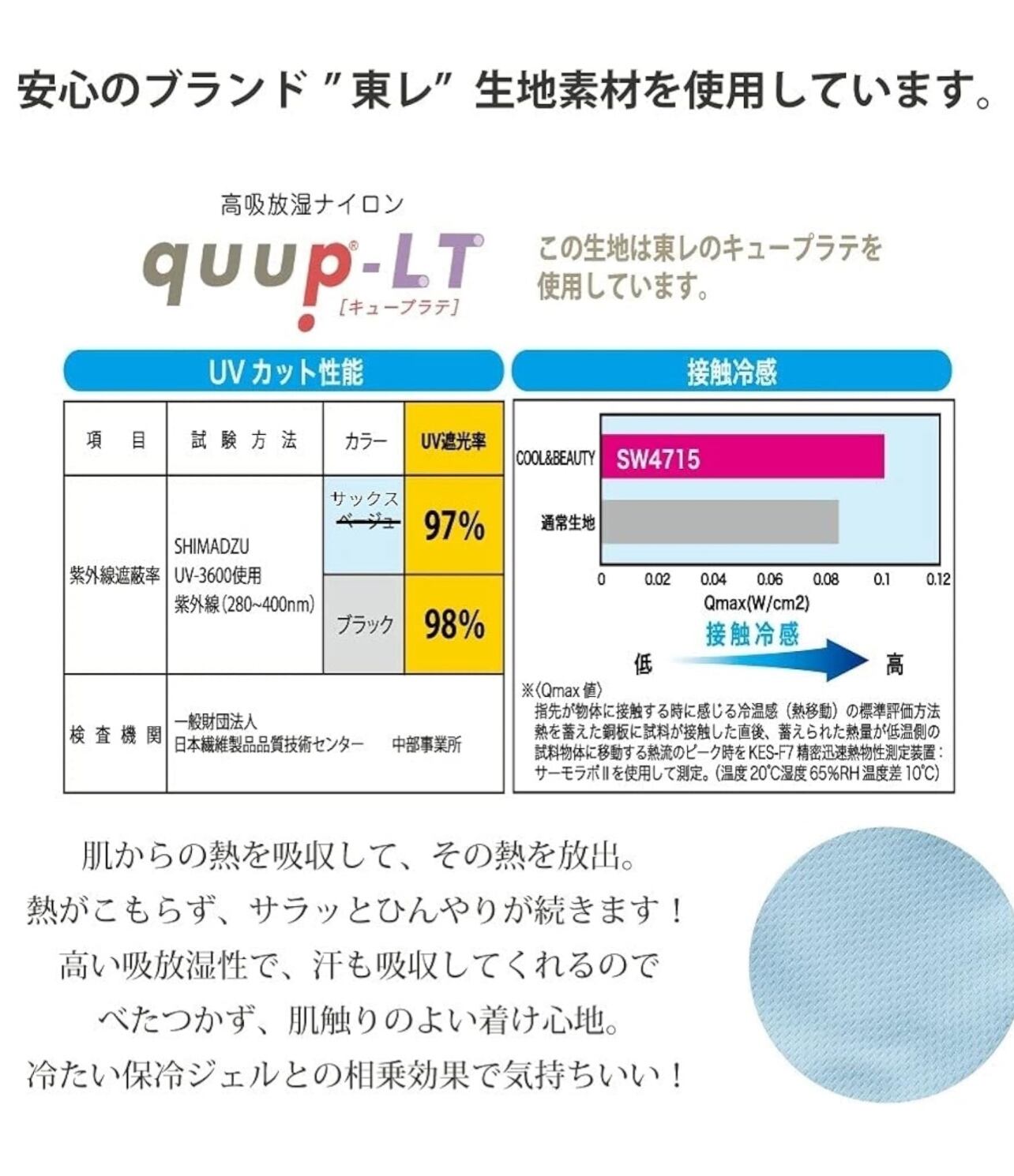接触冷感素材で、暑い夏でもひんやり快適に着用いただけます